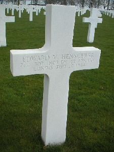 Pfc Henschler was killed during the Waal River crossing and was initially buried at the Temporary American Military Cemetery of Molenhoek, the Neterlands.