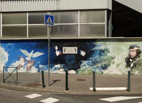Lt Haley is remembered with a mural and plaque on the wall of the Airbus St.-Eloi factory.