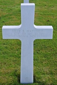 S/Sgt Billy S. Hatcher attended college and worked in the motion picture bussiness before he joined the Regular Army on 4 November 1939.His remains were found in Simonskall and initially registered as Unknown X-5489. He was evacuated to Ardennes Cemetery and could be identified at the identification center.