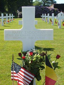 T/Sgt Harry Zadoorian first buried at Temporary American Military Cemetery Ardennes, Belgium Block F, Row 11, Grave 270.