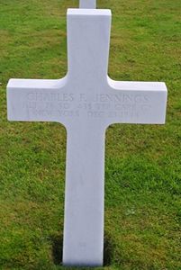 Statement 1st Lt. Charles D. Cox:"Lt. Jennings’s ship was hit, either in fuel tanks or cockpit, and plane blazed furiously, the flames broke out at the nose of the ship and swept back over the entire plane. With the ship flaming, Lt Jennings kept it in normal formation flight for a period over half a minute. Evidently, it became apparent to the crew of Lt Jennings ship that the fire could not be extinguished. He then turned out of formation, climbing to gain altitude, so that the crew could bail out. It passed over my ship and was lost to view. In my opinion, Lt Jennings showed exceptional devotion to duty, in that he kept his plane in formation even though his ship was seriously crippled. He attempted to get his load to the DZ, without regard to personal safety."