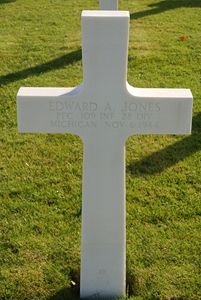 Pfc Edward A. Jones enlisted in Detroit, Michigan on 29 January 1944 and went overseas in July.