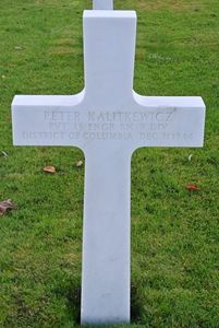 Pvt Peter Kalitkewicz enlisted at Fort Myer, Virginia on 6 December 1943.Source of information: Peter Schouteten, Terry Hirsch www.abmc.gov, www.wwiimemorial.com, www.archives.gov – WWII Enlistment Record, www.ancestry.com - U.S., Headstone and Interment Records for U.S.Military Cemeteries on Foreign Soil / 1940 Census, http://9thinfantrydivision.net,www.wwiimemorial.com, WWII Draft Card