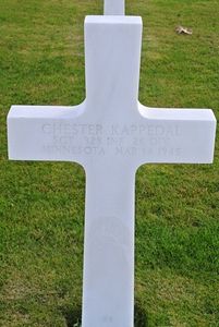 Sgt Chester Kappedal is remembered at the Fertile Veteran's Memorial Plaza Memorial in Fertile, Polk County, Minnesota.He was first buried at Block Y, Row 1, Grave 20.