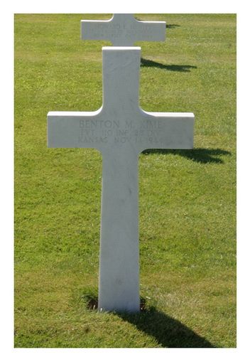 Pvt Benton M. Kime enlisted at Fort Leavenworth, Kansas on 5 April 1944.Source of information: Raf Dyckmans, André Koch, www.abmc.gov, www.wwiimemorial.com, www.archives.gov - WWII Enlistment Record, www.ancestry.com - U.S., Headstone and Interment Records for U.S. Military Cemeteries on Foreign Soil / 1930/1940 Census / Gadzinski-Davis-Bregg-Hooper Family Tree, Missouri Marriage Records, www.findagrave.com - Orlena, IDPF of Raymond C. Blanton