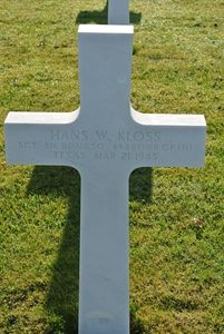 Hans Kloss's parents immigrated from Germany. He attended Chtistine High School where he participated in several sports. Together with his twin sister Margaret, he attended Texas A & I University.Statement from 2nd Lt George A. Gammon, Co-Pilot ship #44-8113