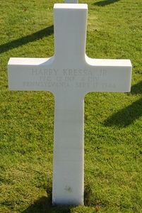 Pfc Harry Kressa Jr. enlisted in Philadelphia, Pennsylvania on 4 January 1944.Pfc Kressa was first buried at the Temporary American Military Cemetery of Fosse, Belgium.