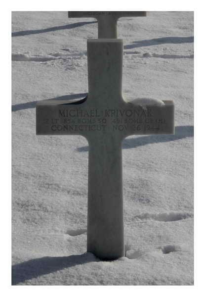 A/C 007 bomb bay on fire plane was shot down by enemy aircraft. Lt Krivonak was one of 4 crewmen who bailed out when their B24 was shot down over Germany on Nov 26, 1944. His fellow crew member, Sgt Kenneth Peiffer reported that Lt Krivonak along with two other crew members was killed by civilians before the German Luftwaffe could reach them.