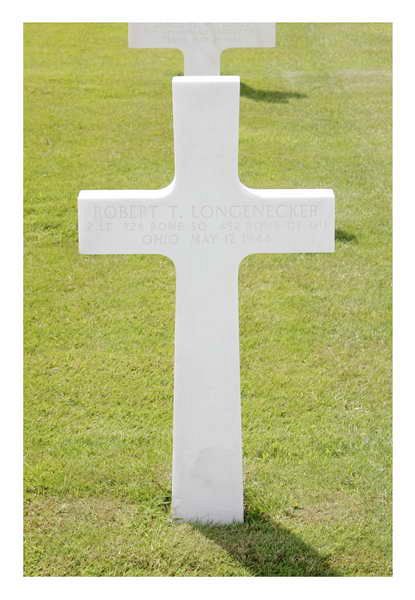 The plane was attacked by enemy aircraft between Koblenz and Frankfurt. The pilot made a crash landing on a hill, 4 Km southeast of Rudersdorf in the district of Siegen, Germany. No one bailed out. 2nd Lt Longenecker was seriously injured in the crash. He was found in front of the ship where he had been thrown. Other crewmembers laid him on the ground and first carried the left waist gunner and top-gunner to a trailer and car on top of the hill and started to go back for the navigator with a stretcher and a German civilian came up the hill with navigator’s sunglasses and escape kit. He motioned for them to go back. 2nd Lt Longenecker must have died after they carried him down there. They believe that he was wounded bad enough to have died in so short a time. 2nd Lt Longenecker was, together with 2nd Lt. Canterbury, 2nd Lt. Hemer and Sgt. Zell, buried on May 13 at the cemetery Ruedersdorf. The other crew members were taken prisoner.Source of information: www.abmc.gov, www.wwiimemorial.com , www.ancestry.com - Family Trees, www.fold3.com - MACR