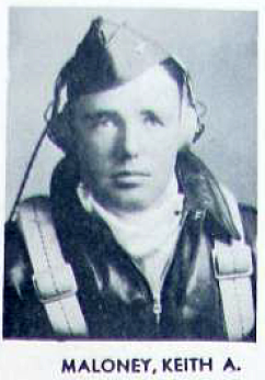 Statement from 1st Lt Robert M. Draney:"After releasing our bombs, aimed at a road bridge at Zieverick, my flight reassembled at an altitude of about 7,000 feet. Just as we reached this altitude in a turn to the right, I spotted a M/T, called it out and went down on it in a low level strafing pass from west to east. As I pulled up, I noticed tracers from light flak positions and took evasive action. When I reached a safe altitude, I looked back for my flight and discovered that they had become separated. Blue Three and Four called in that they were O.K. and had joined another flight. When I called Blue Two, Lt Maloney, he failed to answer. I called several more times without an answer. I looked around the area but could not find any trace of him."