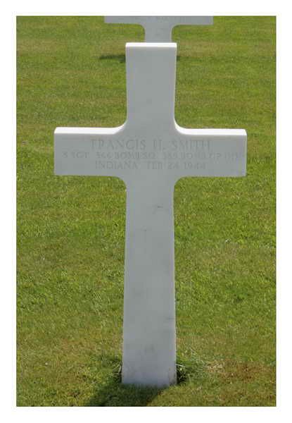 The aircraft was attacked and hit by German fighters approximately 10 miles past target. Aircraft went into a spin at approximately 12,000 feet. Pilot and copilot remained at controls in a futile attempt to regain control of aircraft and were unable to escape prior to the crash. Four of the other crewmen were able to successfully bail out and were captured.Brockway said that S/Sgt Smith was afraid to jump and refused to leave the plane. He had even fought against Brockway when he tried to push Smith out, so Brockway got ready to jump. He was found dead on the ground.