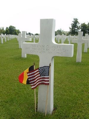 Pvt William O. Riley worked as a gatemen or train caller before he enlisted in Denver, Colorado on 12 December 1943.Source of information: Carla Mans, www.ancestry.com - Headstone and Interment Record / U.S. WWII Draft Cards Young Men