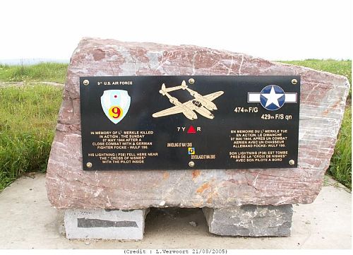 Lt Merkle was initially buried at the Memorial Cemetery of Florennes-Insain on 10 May 1944