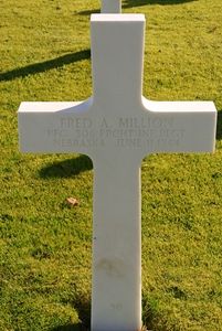 Pfc Fred A. Million was first buried at the Temporary American Military Cemetery of Ste Mere Eglise No. 1, France.Source of information: Peter Schouteten, Terry Hirsch, www.abmc.gov, www.wwiimemorial.com, http://www.ww2-airborne.us/units/506/506_honor_mo.html, www.ancestry.com - U.S., Headstone and Interment Records for U.S. Military Cemeteries on Foreign Soil / 1930 census, WWII Draft Card