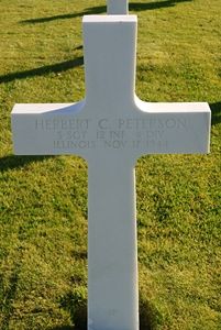 Herbert Peterson's parents were born in Sweden.The remains of S/Sgt Herbert C. Peterson were found in Germeter and initially registered as Unknown X-5755. He was evacuated to Ardennes Cemetery and was identified at the identification center.