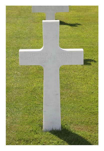 Edward J. Prokop attended Brooklyn Technical High School.He enlisted in New York City, New York on 20 February 1943 two weeks after graduation. He was sent overseas early in the summer of 1944, arriving in England on 11 June 1944.
