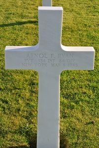 Pvt Arnol F. Ryan enlisted in Syracuse, New York on 9 March 1943.Source of information: André Koch, Terry Hirsch, www.abmc.gov, www.wwiimemorial.com, www.archives.gov – WWII Enlistment Record, www.ancestry.com - 1930/1940 Census / New York State Census 1925 / U.S., Headstone and Interment Records for U.S. Military Cemeteries on Foreign Soil, 1942-1949, http://digicom.bpl.lib.me.us/ww_reg_his/89/, http://www.ibiblio.org/hyperwar/USA/USA-SS-Chronology/USA-SS-Chronology-5.html, WWII Draft Card