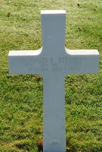 Pfc Donald E. Sterrett attended college for two years and was a foreman.He enlisted in Indianapolis, Indiana on 13 October 1943. He was sent overseas in May 1944.