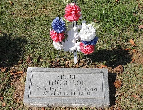Cpl Victor D. Thompson enlisted in Louisville, Kentucky on 17 December 1942.He is remembered at the Little Barren Cemetery, Greensburg, Green County, Kentucky.