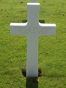 Pfc Griffin M. Zimmerman Jr. graduated from Schurz High School in 1933 and attended the University of Illinois. He was employed at the Pittsburgh Plate Glass Company.He enlisted in Chicago, Illinois on 4 June 1941.