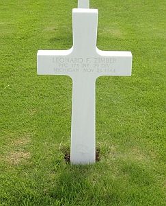 Pfc Leonard F. Zimber joined his unit from a replacement depot on 27 June 1944 and was lightly wounded in action on 13 July 1944, for which he was awarded the Purple Heart Medal a first time.Source of information: Raf Dyckmans, Terry Hirsch, www.ancestry.com - 1920/1940 Census / 29th Infantry Division After Action Report, WWII Draft Cards