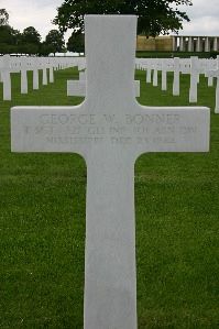 T/Sgt George W. Bonner worked on the family farm before joined the Regular Army at Fort McClellan, Alabama on 5 August 1940.At the start of the Battle of the Bulge, his unit defended the village of Flamierge, where he was taken prisoner on 23 December 1944, together with several other members of his unit. During their walk to the German border, they were forced to move wrecked vehicles and dead German bodies, victims of air attacks, of the road into ditches. During one of the air attacks, T/Sgt Bonner was moratally wounded.