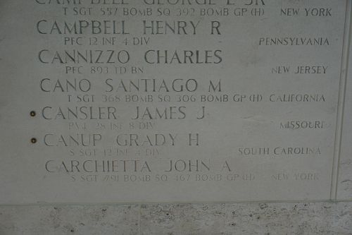 A rosette was placed next to his name on the Walls of the Missing at Margraten to indicate he has been accounted for.