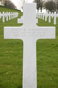Philip Nachefski enlisted on 5 July 1943 at Jefferson Barracks, Missouri. He jumped in the invasion of Southern France on 15 August 1944 and was killed in the Battle of the Bulge.Source of information: Peter Schouteten, Carla Mans, www.ww2-airborne.us, www.wwiimemorial.com, www.archives.gov, www.ancestry.com - U.S. WWII Draft Cards Young Men