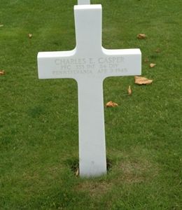 On 9 April 1945, a task force of the 333rd regiment was just outside Hannover in the small town of Weetzen. By nightfall, the advancing column was placed under accurate and deadly artillery fire that could have only been directed by a German observer within the town. It was here that Chuck Casper, although grievously wounded, refused evacuation and instead stayed to direct others in rendering medical aid to wounded comrades. He was the last man to leave the makeshift aid station, and sadly, died before he could receive medical treatment for himself. For this heroic action Charles Casper was awarded the Distinguished Service Cross posthumously.