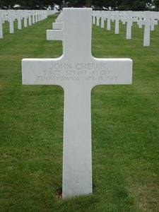 S/Sgt John Chepan enlisted in Wilkes Barre, Pennsylvania on 7 October 1942.The exact date on which he was reported wounded in action and the location where he died is not known.