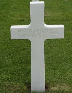 Rocco Christiano was initially buried at the Temporary American Military Cemetery of Molenhoek near Nijmegen in the Netherlands.Source of information: Peter Schouteten, Terry Hirsch, www.wwiimemorial.com, www.archives.gov, www.ancestry.com - 1930 Census / Headstone and Interment Record, www.ww2-airborne.us, WWII Draft Cards