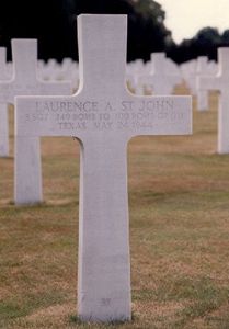 S/Sgt Laurence A. St. John attended Mobeetie High School. He was employed at Cicero Smith Lumber Company.At 10:30 AM the airplane was attacked by 40 FW 190's. It was hit and a large explosion caused a huge ball of fire and smoke.