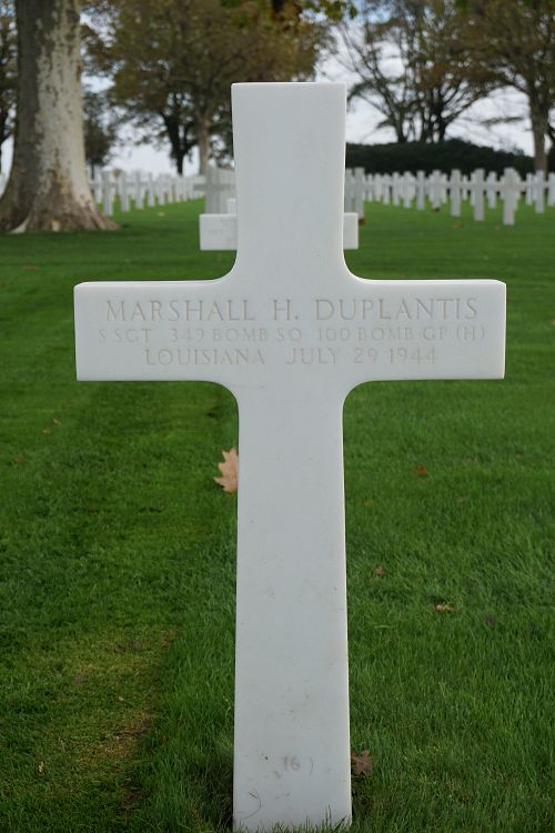 S/Sgt Marshall Duplantis attended Terrebonne High Schooland worked in a warehouse before he enlisted in New Orleans, Louisiana on 25 February 1943.The airplane was shot down by enemy fighters. Eight crew members were killed, one was taken prisoner.