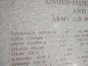 Pfc Dennis M. Stockholm enlisted on 30 July 1943 in Toledo, Ohio.Source of information: Terry Hirsch, WWIIMemorial.com, NARA, WWII Draft Card, 1940 US Census