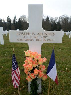 Pfc Joseph P. Abundes worked on the family farm before he enlisted in Los Angeles, California on 23 December 1943.Source of information: Leo Minne, www.abmc.gov, www.wwiimemorial.com, www.ancestry.com – 1930/1940 Census / Headstone and Interment Record / U.S. Draft Cards Young Men / US WW2 Hospital Admission Cards, History 3rd Infantry Division WWII