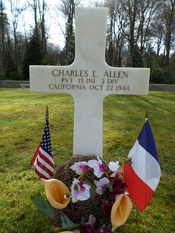 Pvt Charles E. Allen attended college for two years and was a farm laborer before he joined the Regular Army on 20 June 1940.He was married Margaret Moore on 19 February 1942 in Pierce, Washington, while stationed at Fort Lewis under command of Lieutenant Colonel Dwight D. Eisenhower.