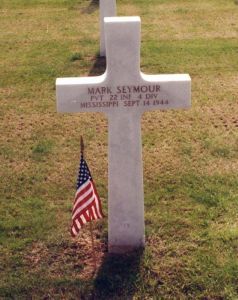 Mark Seymour enlisted at camp Shelby, Mississippi on 4 January 1944.He is remembered at Bellande Cemetery, Ocean Springs, Jackson County, Mississippi.