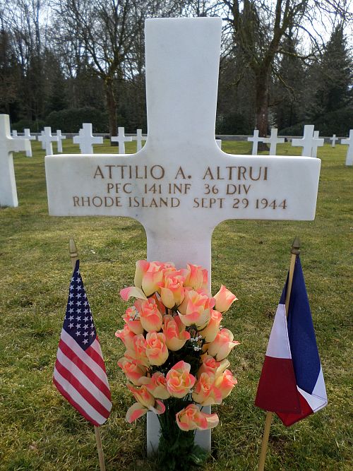 Pfc Attilio A. Altrui enlisted in Providence Rhode Island on 24 August 1943.Source of information: André Koch, www.abmc.gov, www.wwiimemorial.com, www.ancestry.com- 1920/1930 Census / Headstone and Interment Records / U.S. WWII Draft Cards Young Men, 1940-1947 / New York, New York, Birth Index 1910-1965 / 141aar-June-to-September-1944.pdf / https://36th-id.frb.io