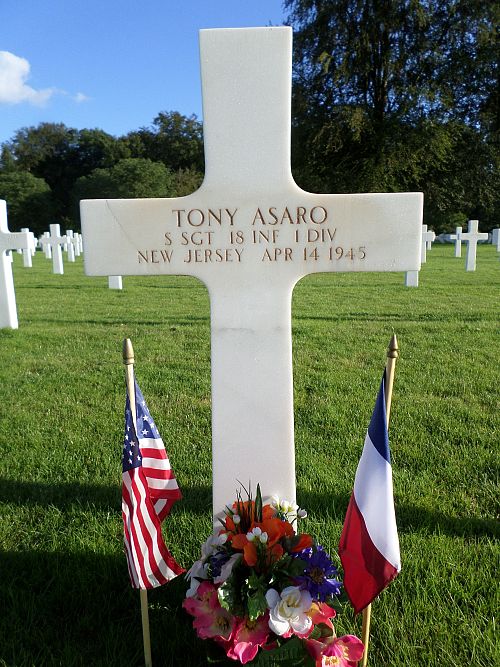 S/Sgt Tony Asaro enlisted in Camden, New Jersey on 12 December 1942.He was first buried at the Temporary American Military Cemetery in Solers, France.