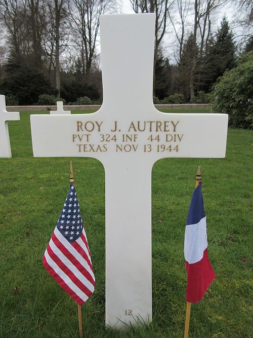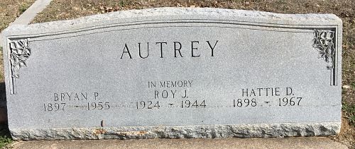 Pvt Roy J. Autrey was a student at the North Texas Agricultural College before he enlisted 15 April 1943. He was sent overseas on 16 September 1944.He is remembered at the Pilot Point Community Cemetery in Pilot Point, Denton County, Texas.