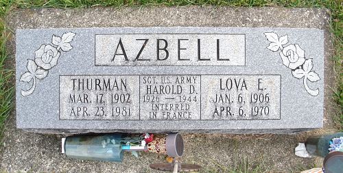 S/Sgt Harold D. Azbell attended high school for four years before he enlisted in Indianapolis, Indiana on 3 September 1943.He died from a carbon monoxide gas poisoning.