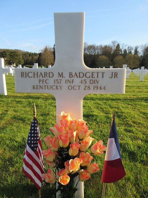 Pfc Richard M. Badgett attended high school for 1 year and worked on a farm before he enlisted in Fort Benjamin Harrison, Indiana on 10 March 1943.Source of information: Peter Schouteten, www.abmc.gov, www.wwiimemorial.com, www.archives.gov – WWII Enlistment Record, www.ancestry.com - Headstone and Interment Record / Wilson Family Tree, http://www.45thdivision.org, www.findagrave.com – Bill Badgett