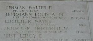 S/Sgt Louis A. Lehrmann Jr. was a musician before he enlisted in New Orleans, Louisiana on 17 July 1943.The aircraft was downed during a raid on 8 April 1945. It was attacked by an ME-109. The #3 engine caught fire and the pilot peeled out of formation and feathered the damaged engine. The engine fire went out but the wheel well was blasing fiercely. The bombs were salveed and the airplane completed a 180 degree turn and headed back alone. It was last seen under control and diving into a cloud bank.