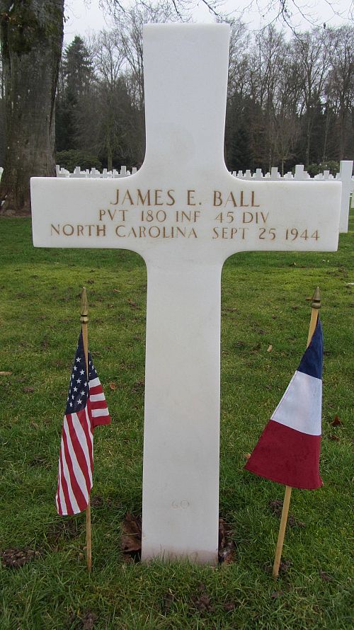 Pvt James E. Ball was a weaver before he enlisted in Camp Croft, South Carolina on 27 January 1943.He was first buried at the Temporary American Military Cemetery in Saint-Juan, France.