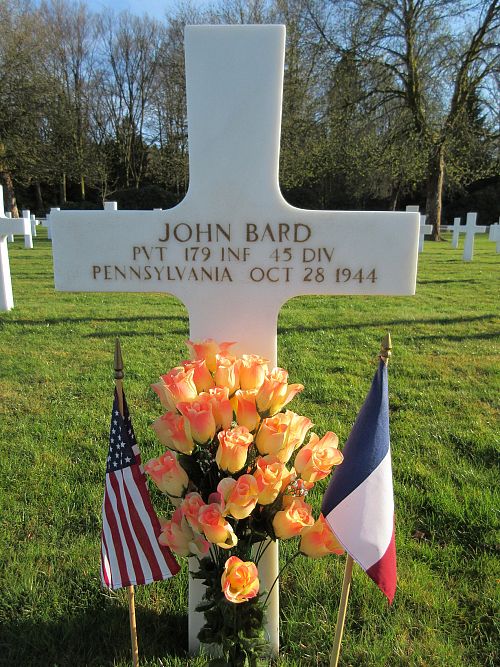 Pvt John Bard enlisted in Harrisburg, Pennsylvania on 15 January 1944.Source of information: Peter Schouteten, www.abmc.gov, www.wwiimemorial.com, www.archives.gov – WWII Enlistment Record, www.ancestry.com - Headstone and Interment Record / Pennsylvania Veteran Compensation Application Files WWII / John Schultz’s Family Tree, http://www.45thdivision.org