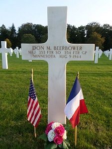 Maj Don M. Beerbower was first buried at the Temporary American Military Cemetery, Champigneul, France.