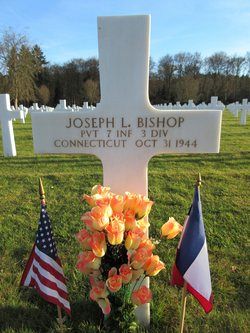Pvt Joseph L. Bishop attended high school for one year and was a waiter at the cotton mill of the Powdrell & Alexandar Co.He enlisted in Hartford, Connecticut on 13 August 1943.