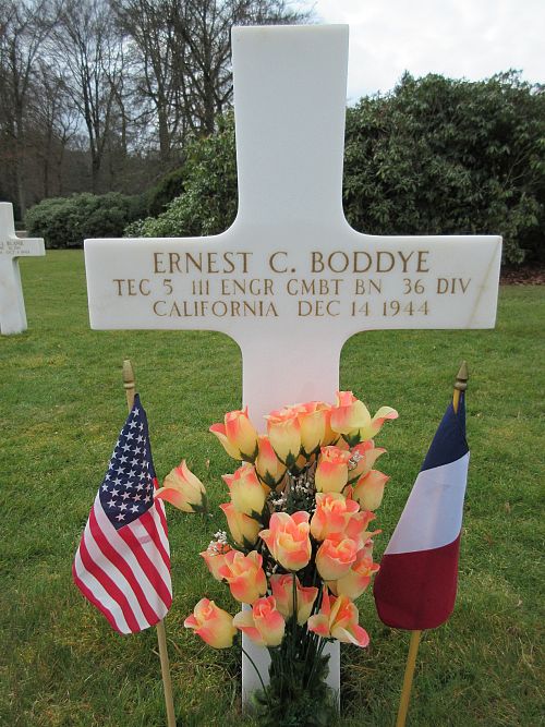 T/5 Ernest C. Boddye enlisted in Los Angeles, California on 11 September 1941.Source of information: André Koch, www.abmc.gov, www.wwiimemorial.com, www.archives.gov - WWII Enlistment Record, www.ancestry.com - U.S. WWII Draft Cards Young Men 1940-1947 / 1920/1930/1940 Census