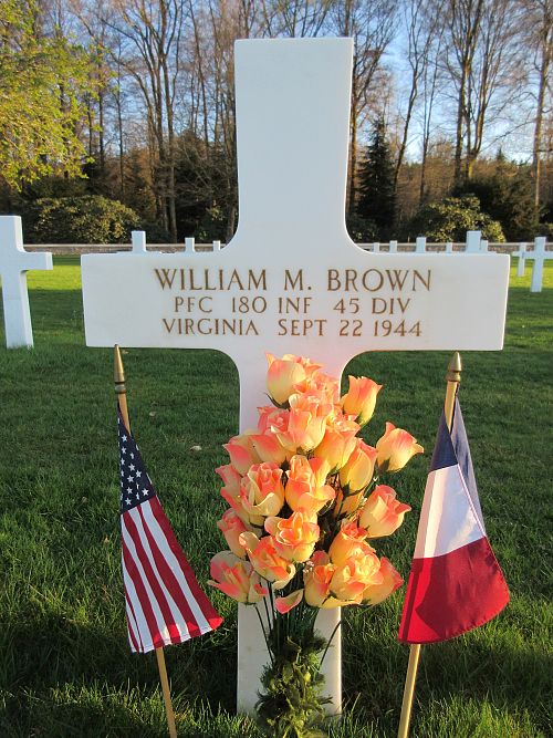 Pfc William M. Brown enlisted in Richmond, Virginia on 9 March 1943.He was first buried at the Temporary American Military Cemetery in Saint-Juan, France.