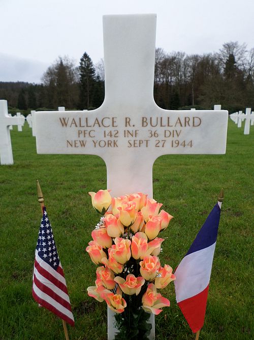 Pfc Wallace R. Bullard enlisted in Buffalo, New York on 27 August 1943.Source of information: André Koch, www.abmc.gov, www.wwiimemorial.com, www.archives.gov - WWII Enlistment Record, www.ancestry.com - 1930/1940 Census / U.S. WWII Draft Cards Young Men / New York State Birth Index / 142ndaar-.pdf / https://36th-id.frb.io